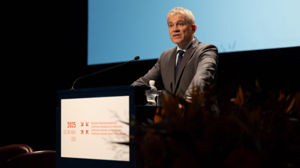 Il 13 novembre il consigliere federale Beat Jans ha partecipato alla Conferenza nazionale sul federalismo a Zugo. Nel suo discorso davanti ai rappresentanti dei Cantoni, dei Comuni e della Confederazione ha illustrato i vantaggi, le sfide e le opportunità del nostro sistema federalista: «Il federalismo ci obbliga a collaborare e a impegnarci, creando stabilità e identificazione».